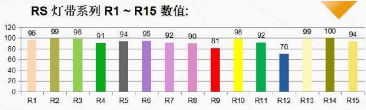 Average 95: The overall CRI of the strip averages 95, but some color samples (including R9) may fall below this value.