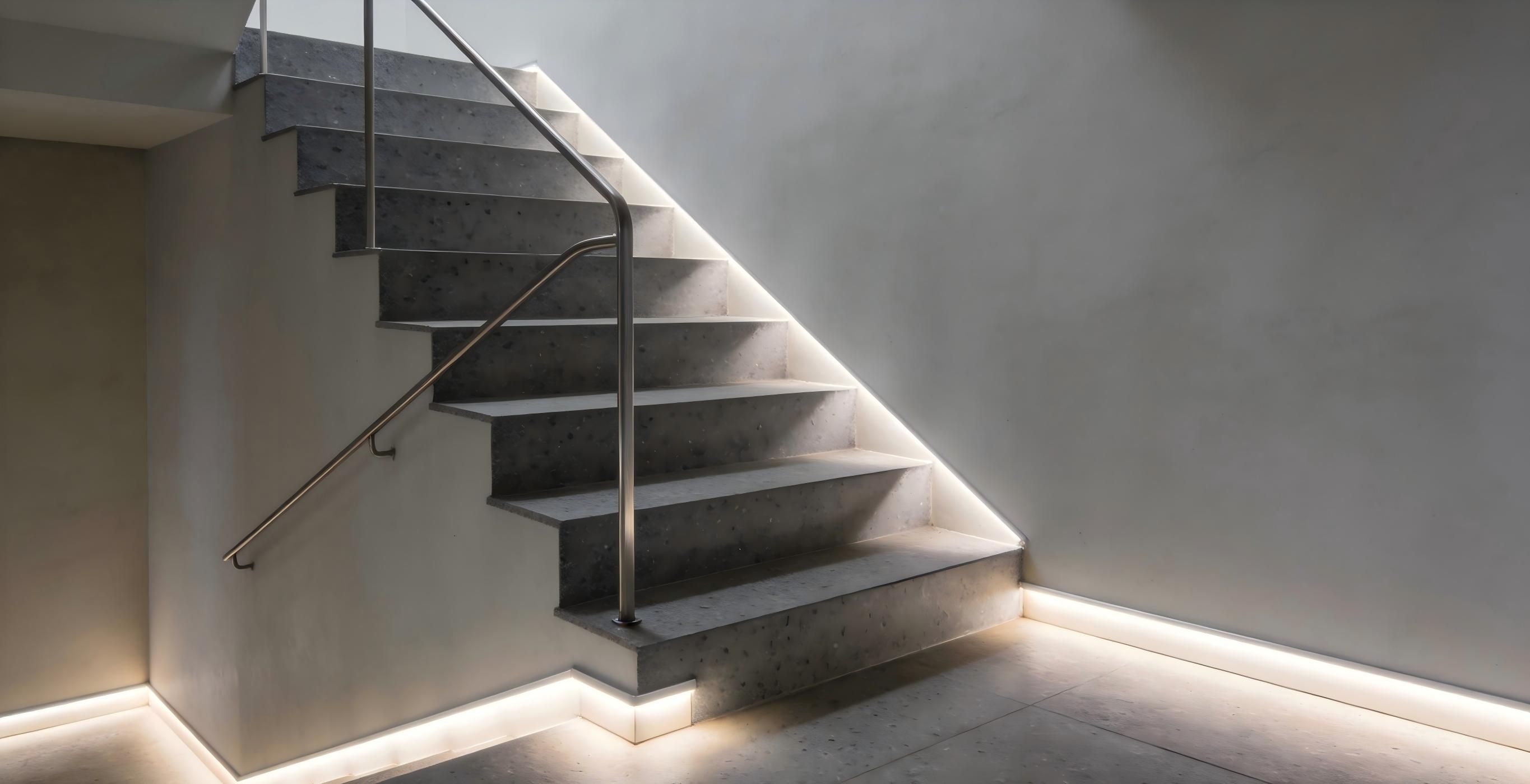 For staircases, it’s recommended to replace harsh ceiling lights with baseboard lighting. The light extends along the floor, clearly illuminating each step while providing a cleaner, safer look. The overall effect is more streamlined and adds a touch of design sophistication.